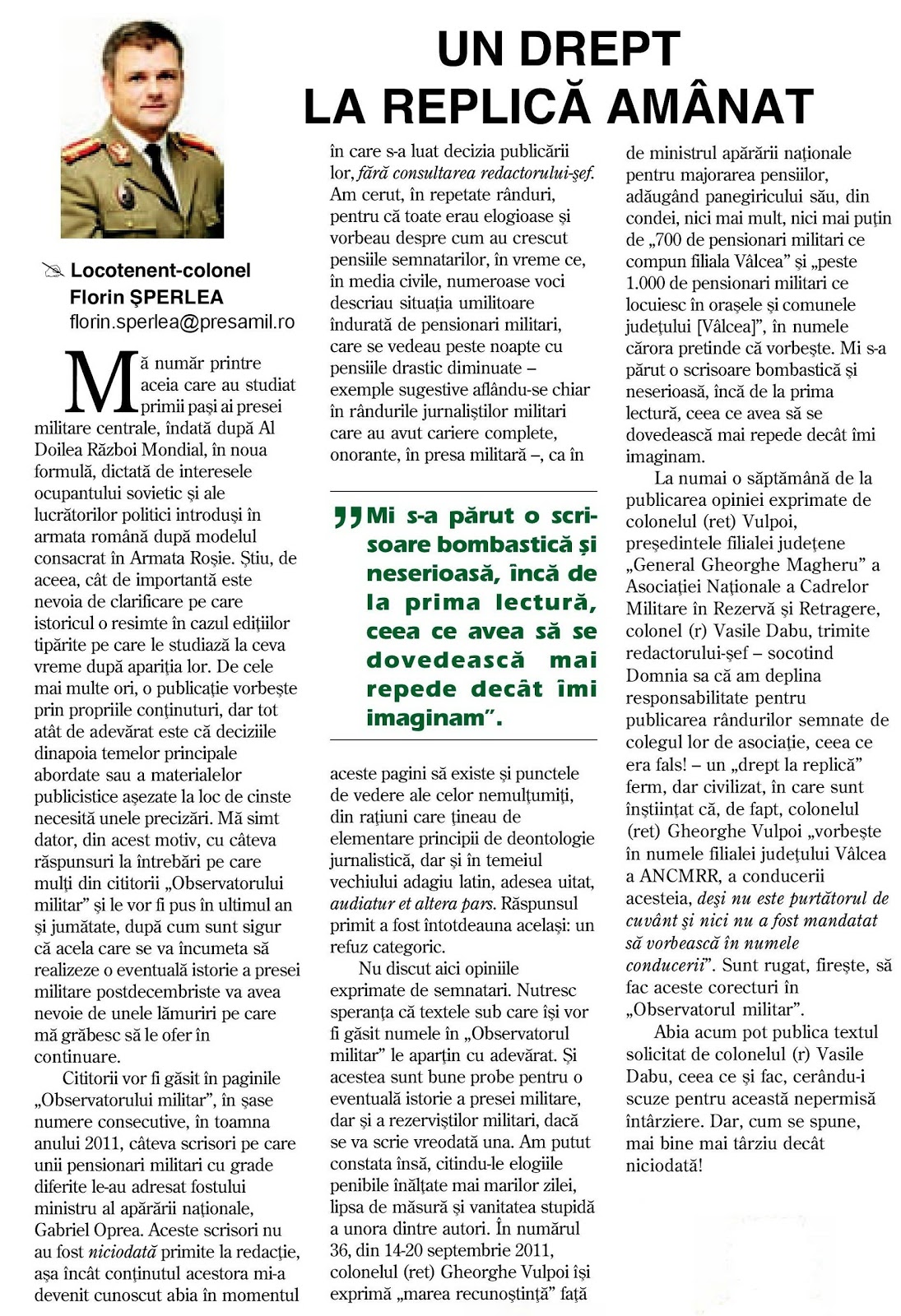 Un drept la replica amanat